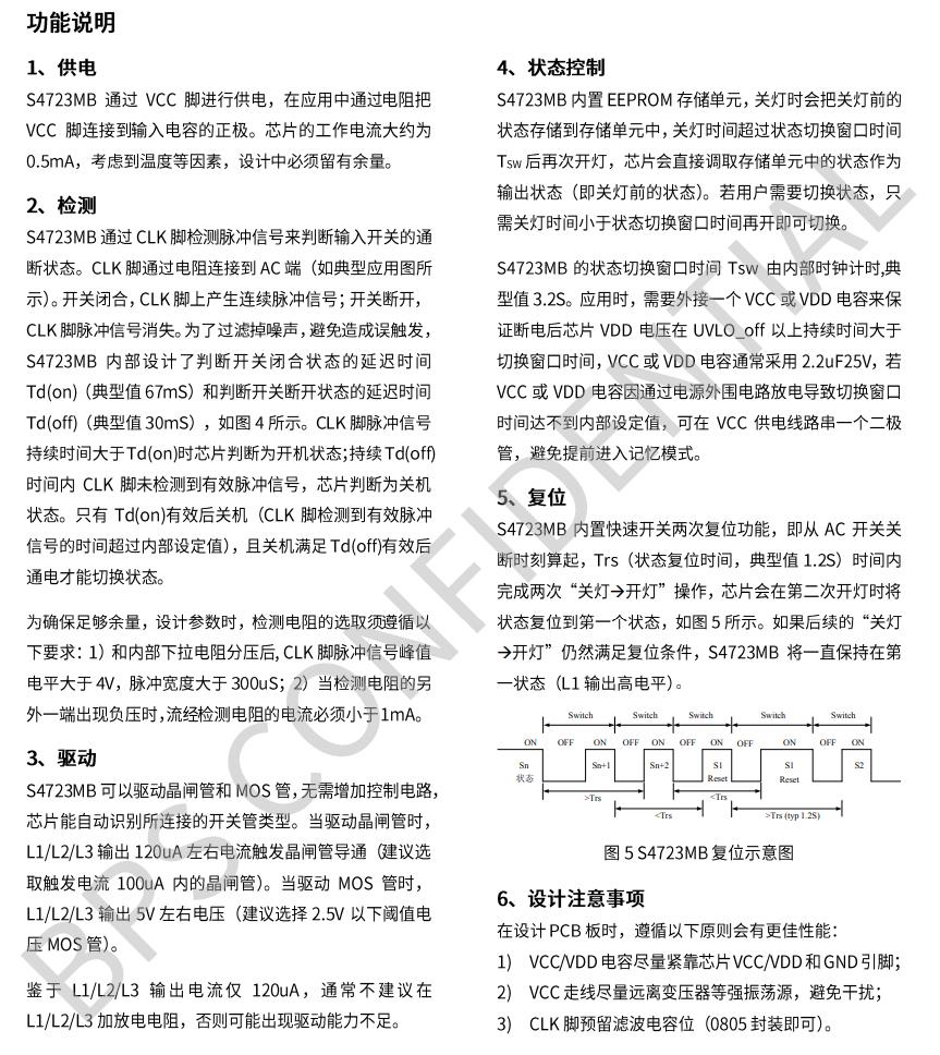 S4723MB | SOP8 | 外置MOS管/SCR | / | 1S開關2次 | A->B->C |