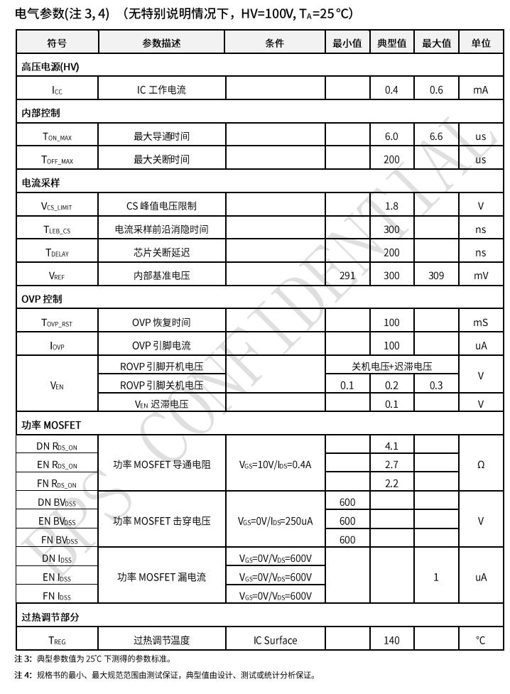 BP2364DN | ASOP-8 | Y | 6.8Ω | 600V | External | Y | - | - | <220 |