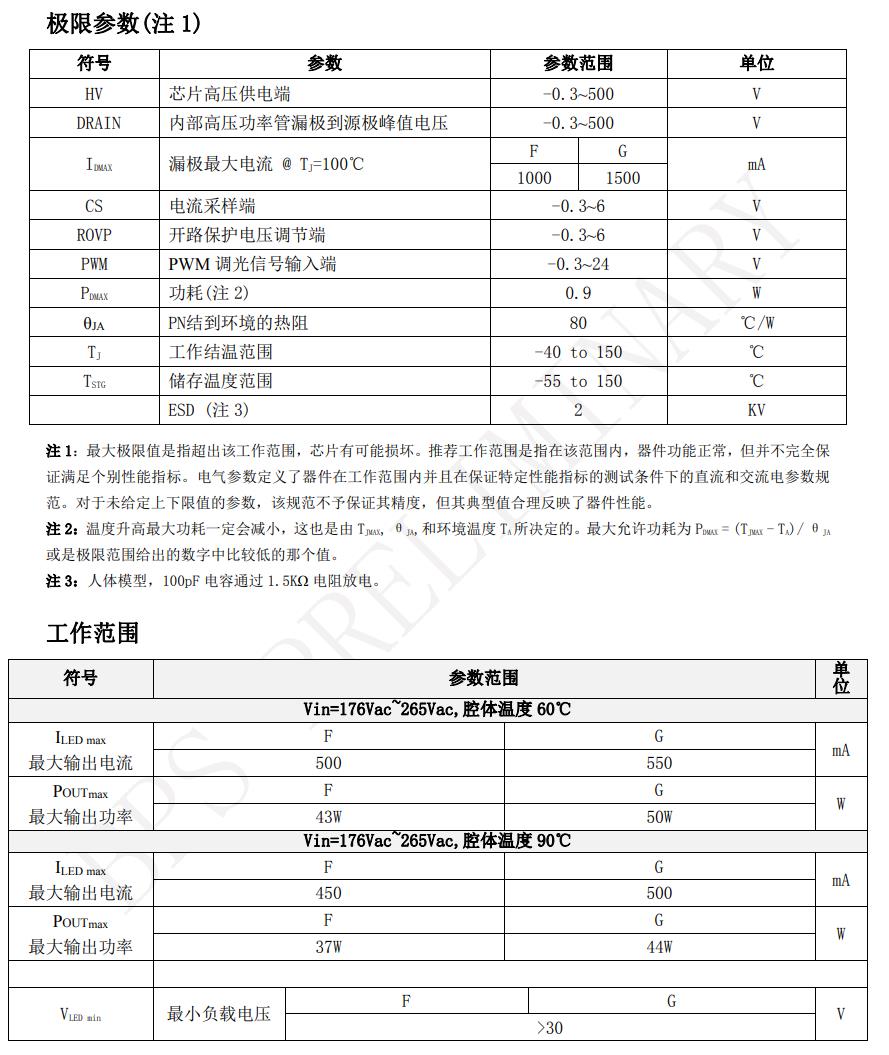 特點 ? 支持 1%-100%PWM 調光 ? 全程模擬調光無頻閃 ? 無需啟動電阻和 VCC 電容 ? 內部集成 500V 功率管 ? ±5% LED 輸出電流精度 ? LED 開路保護 ? LED 短路保護 ? 過熱調節功能 ? 采用 DIP7 封裝