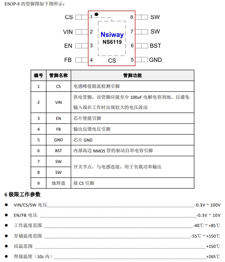 NS6119 采用 ESOP8 的標準封裝。