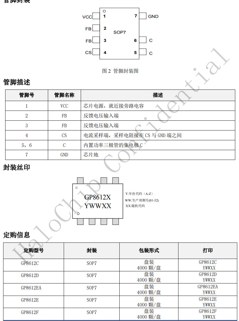 GP8612X具有多重保護(hù)功能,包括開路保護(hù),過壓保護(hù),短路保護(hù)等功能。
