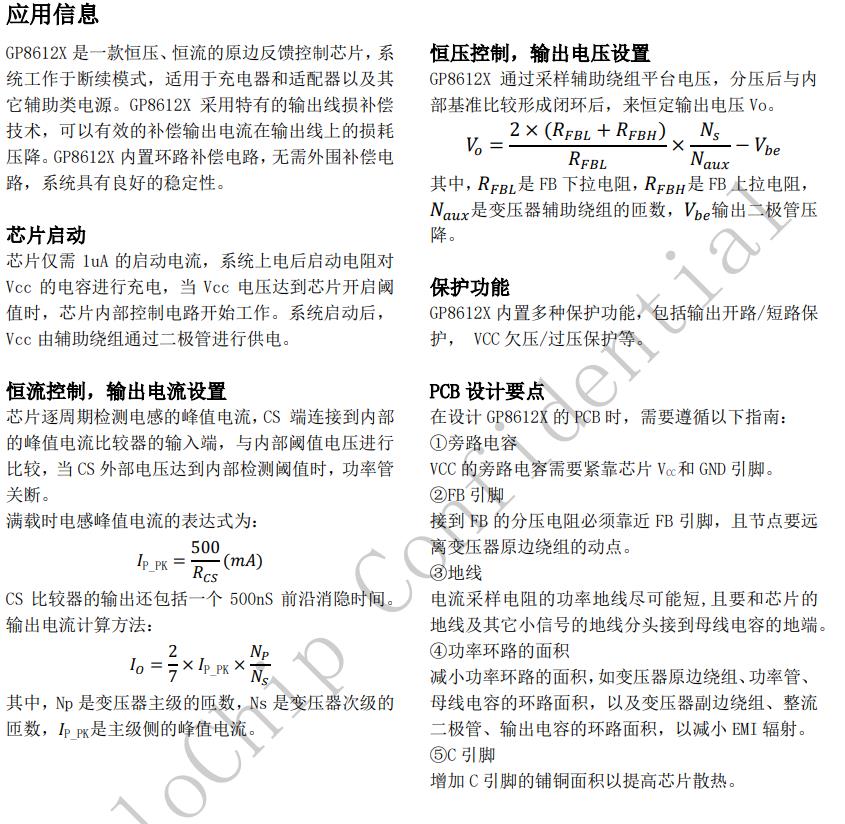GP8612X是一款恒壓、恒流的原邊反饋QR導(dǎo)通控制芯片,適用于充電器和適配器。GP8612X采用特有的輸出線損補(bǔ)償技術(shù),可以有效的補(bǔ)償輸出電流在輸出線上的損耗壓降。