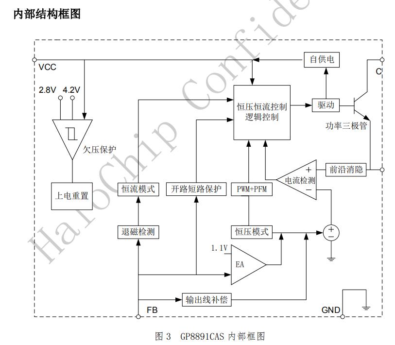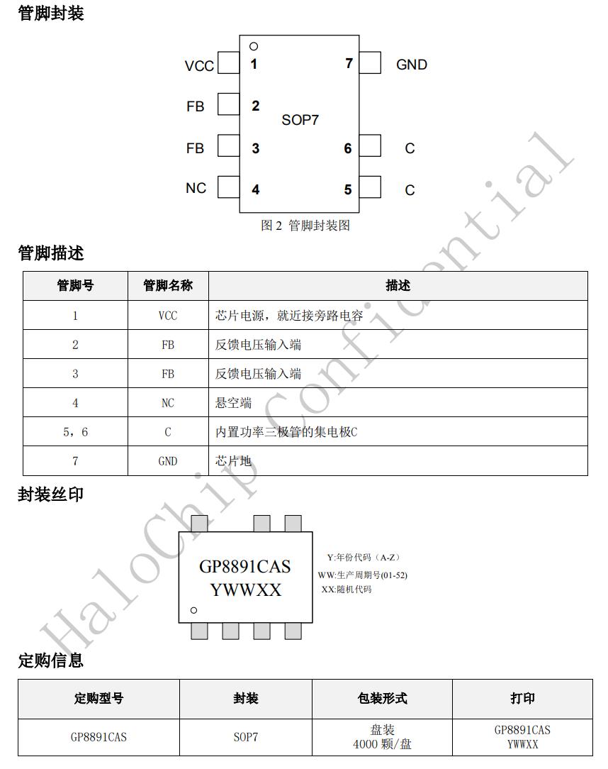 GP8891CAS采用獨特的單周期最大電流關斷機制,可避免三極管過流導致的各種失效。GP8891CAS采用SOP7封裝。