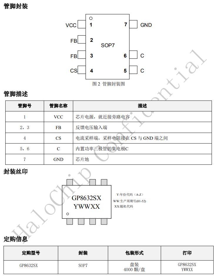 GP8632SX是一款恒壓、恒流的原邊反饋谷底導(dǎo)通控制芯片,適用于充電器和適配器。GP8632SX采用特有的輸出線損補(bǔ)償技術(shù),可以有效的補(bǔ)償輸出電流在輸出線上的損耗壓降。GP8632SX內(nèi)置環(huán)路補(bǔ)償電路,無(wú)需外圍補(bǔ)償電路,系統(tǒng)具有良好的穩(wěn)定性。GP8632SX可以實(shí)現(xiàn)良好的恒壓、恒流特性,滿足待機(jī)功耗小于75mW。GP8632SX具有多重保護(hù)功能,包括開(kāi)路保護(hù),過(guò)壓保護(hù),短路保護(hù)等功能。GP8632SX采用SOP7封裝