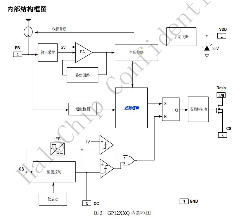 內置650V MOSFET/ COOLMOSFET待機功耗低于70mW±5%恒流恒壓精度內置線損補償技術輸出短路保護逐周期過流保護前沿消隱防0CP誤動作管腳開路保護軟啟動功能輸出過壓保護電源(Vdd腳)過壓保護及鉗位電源(Vdd腳)欠壓保護