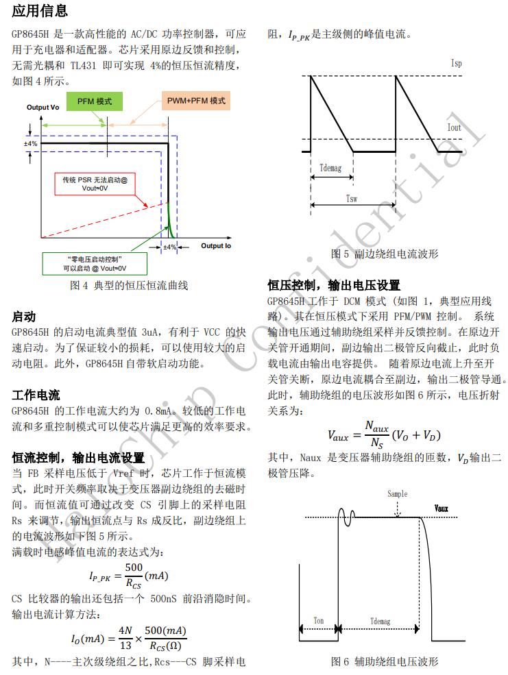 GP8645H在恒流工作中采用PFM控制,在恒壓工作中采用PFM/PWM多種模式復合控制。此外,GP8645H集成了輸出線纜補償功能,從而有利于減小開關(guān)損耗并簡化系統(tǒng)EMI設計,優(yōu)化輸出特性。