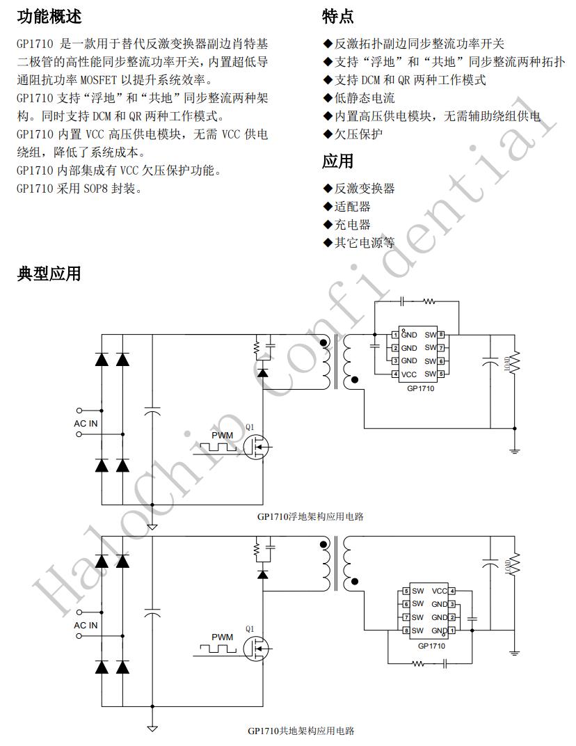 GP1710支持“浮地”和“共地”同步整流兩種架構(gòu)。同時支持DCM和QR兩種工作模式。