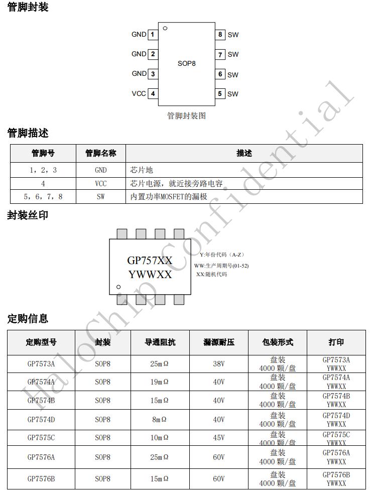 GP757XX內部集成有VCC欠壓保護功能。GP757XX采用SOP8封裝