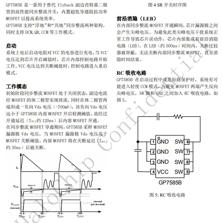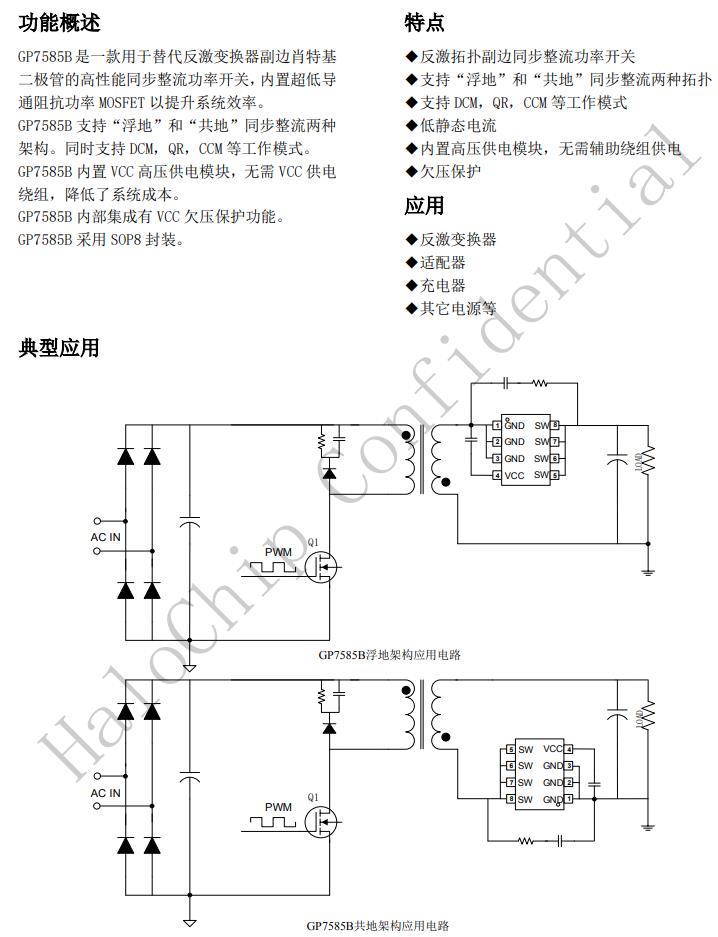GP7585B支持“浮地”和“共地”同步整流兩種架構。同時支持DCM,QR,CCM等工作模式。