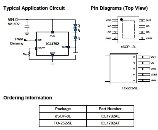 ? 700mA最大輸出電流 ? 5V~40V極寬的供電電壓范圍 ? 高達(dá)40V之輸出級(jí)耐壓 ? 可經(jīng)由外設(shè)電阻調(diào)節(jié)輸出電流 ? 可支持PWM調(diào)光