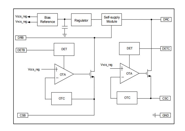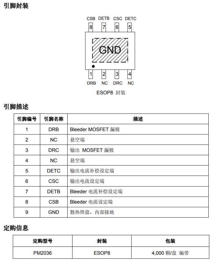 PM2036內(nèi)部集成了兩個(gè)固定恒流源,兩個(gè)恒流 源之間的關(guān)系可以靈活配置,既可以獨(dú)立使用, 又可以并聯(lián)使用。獨(dú)立使用時(shí),PM2036可以實(shí)現(xiàn) 單顆IC同時(shí)控制兩路LED,滿(mǎn)足可控硅調(diào)光的照 明應(yīng)用;關(guān)聯(lián)使用時(shí),PM2036有著異常靈活的應(yīng) 用方案,既可以兼顧高功率因數(shù),也可以配置成 功率因數(shù)大于0.9的光電一體化方案,可以使用傳 統(tǒng)可控硅調(diào)光器調(diào)光。