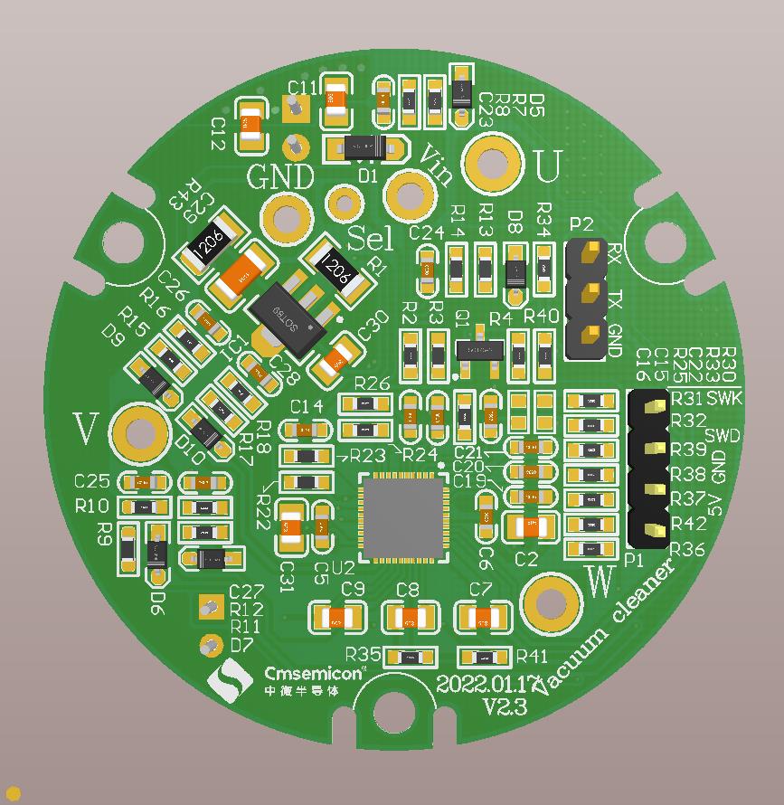 CMS32M5533 是 ARM-Cortex M0 內(nèi)核, 同時(shí)內(nèi)置 90V 三相半橋驅(qū)動(dòng)模塊芯片。MCU負(fù)責(zé)整個(gè)系統(tǒng)的信號(hào)采集, 數(shù)據(jù)處理, 驅(qū)動(dòng)輸出, 邏輯功能控制。